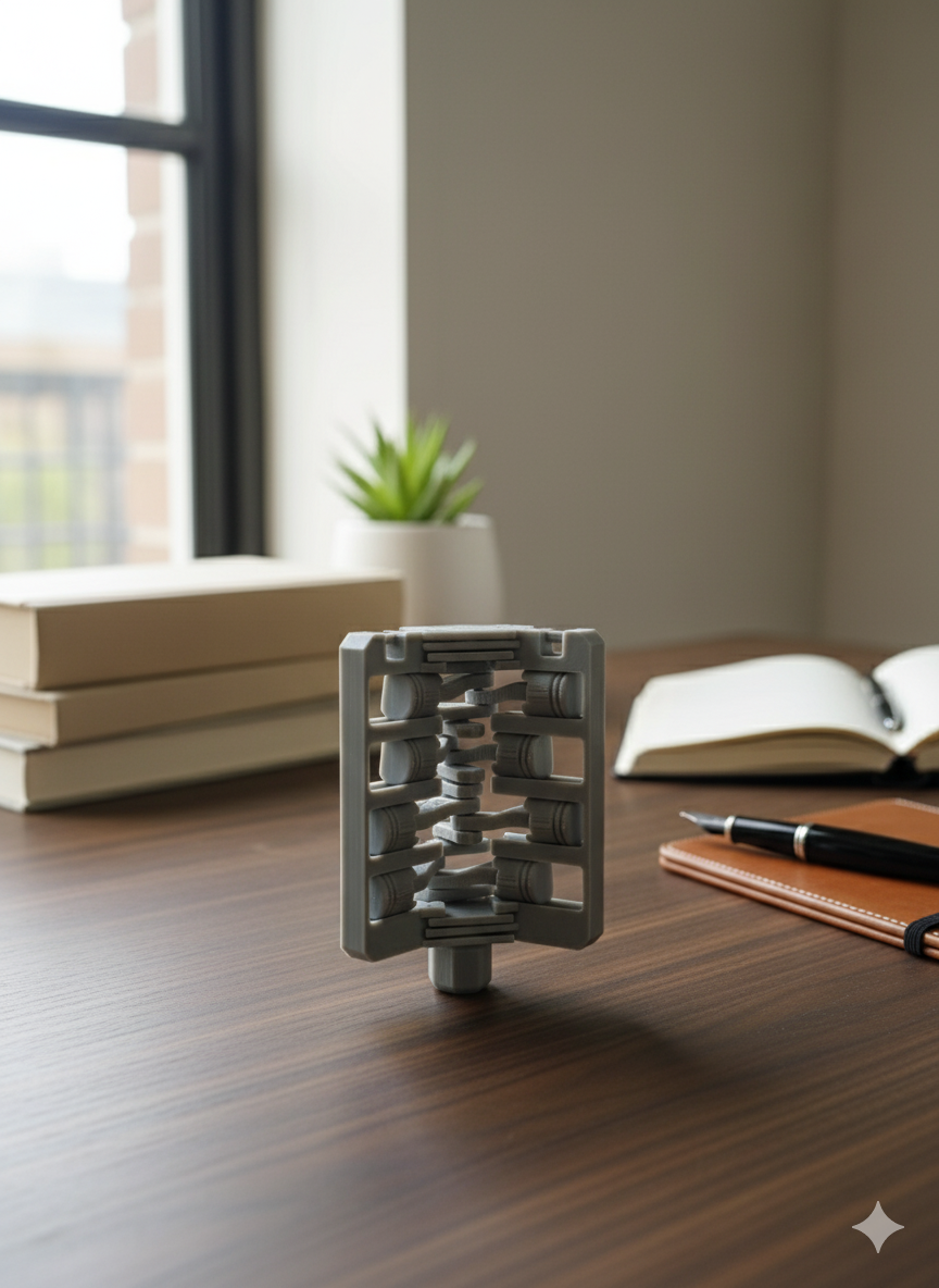 Ένα περίπλοκο, μηχανικό γλυπτό που λειτουργεί ως απολαυστικό fidget gadget